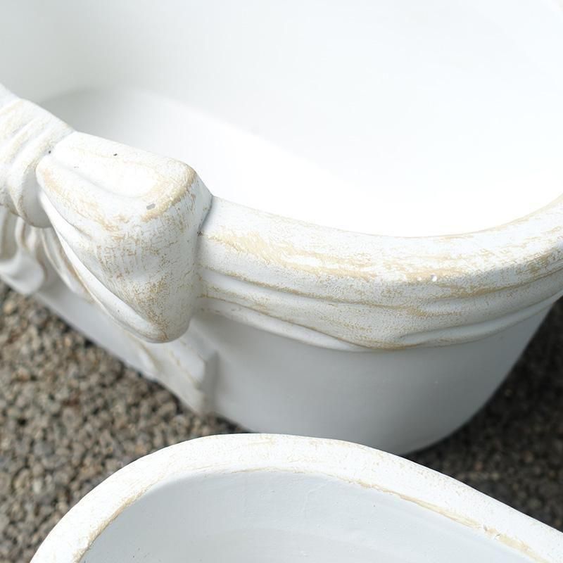 リボンプランター オーバル楕円 L 植木鉢 セメントポット ホワイト