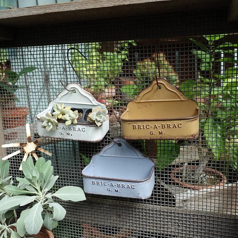 ブリキ ウォールハンギングポット ブリカポット ブルー 多肉植物 植木鉢 壁掛け 底穴あり