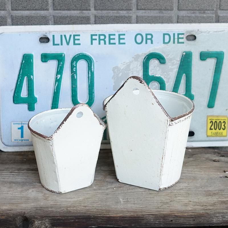 ブリキ ハンギングポット リトルスポット Lサイズ ホワイト 多肉植物 カップ形 壁掛け 底穴あり 2.5号