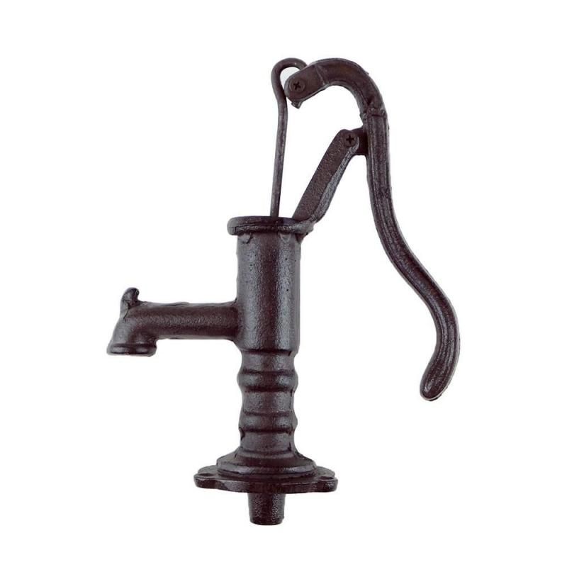 井戸のポンプを模ったアイアン(鋳物)製ガーデンオブジェ。ポンプのハンドルは少し可動します。取り付け用ネジ穴が3か所、ポンプ下の突起部分の径は約2.5cmです。
