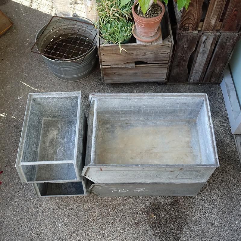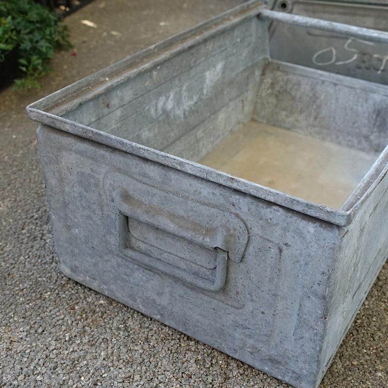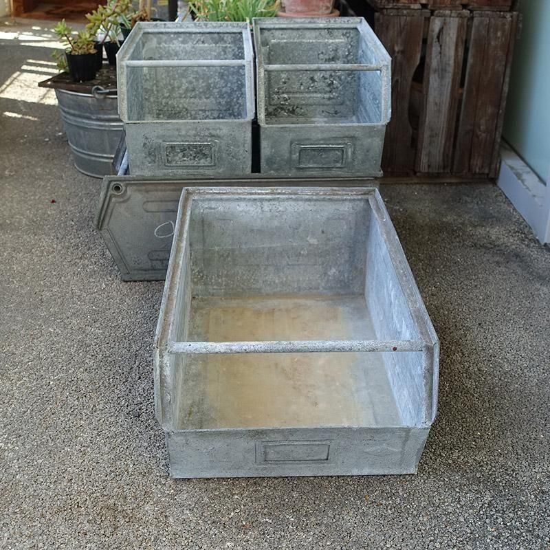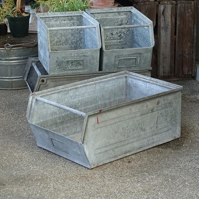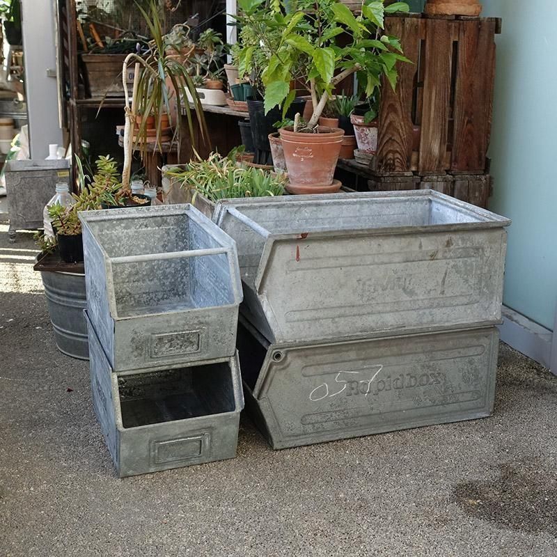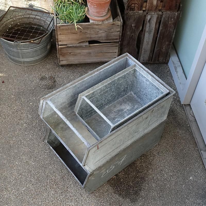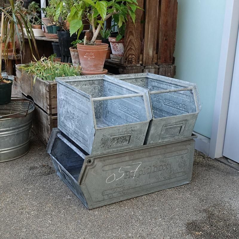 ヴィンテージ ガルバナイズド パーツビン L スタッキング ストレージ 工具箱 収納ボックス プランター 鉢カバー 【USED】